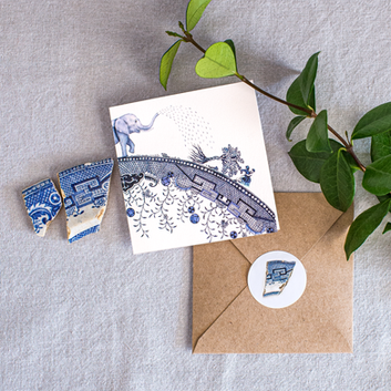 Blougrond is a text-less illustrated narrative of characters that escape from pottery shards and together embark on a life-changing journey. The story was inspired by a collection of British pottery shards that were excavated from the garden of my childhood-home in Paarl. It was the cut-off juxtaposed fragments of blue and white printed patterns and Victorian figures that captured my imagination. These fragments became the starting point for the Blougrond story about a journey to fantasy worlds, working together, finding oneself, and transformation.